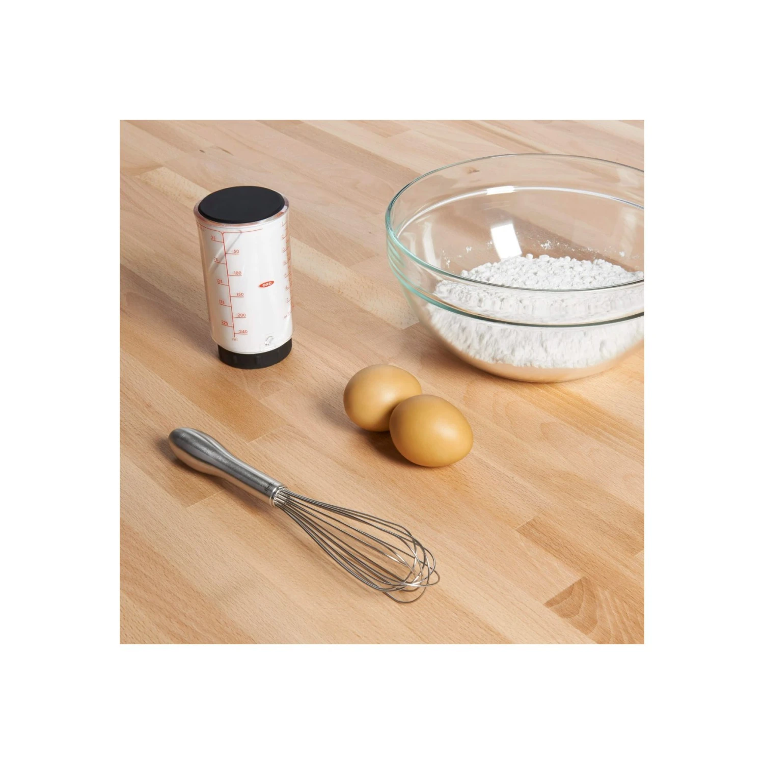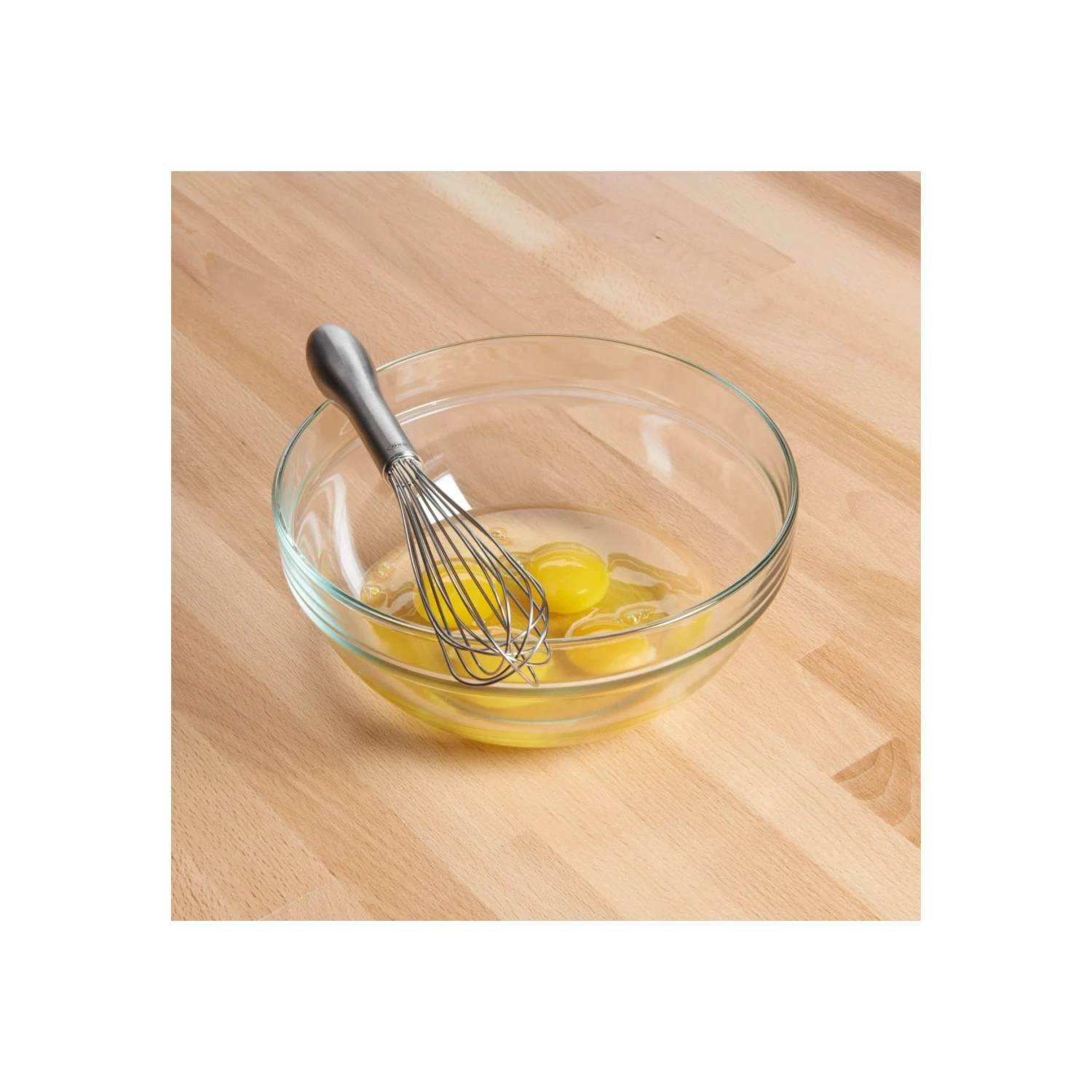 The OXO SteeL Whisks have brushed stainless steel handles designed to maximize comfort during use. The bulb-shaped back end fits comfortably in the palm of the hand, and the brushed stainless steel provides a smooth gripping surface. The Whisks are perfectly weighted for all tasks at hand.