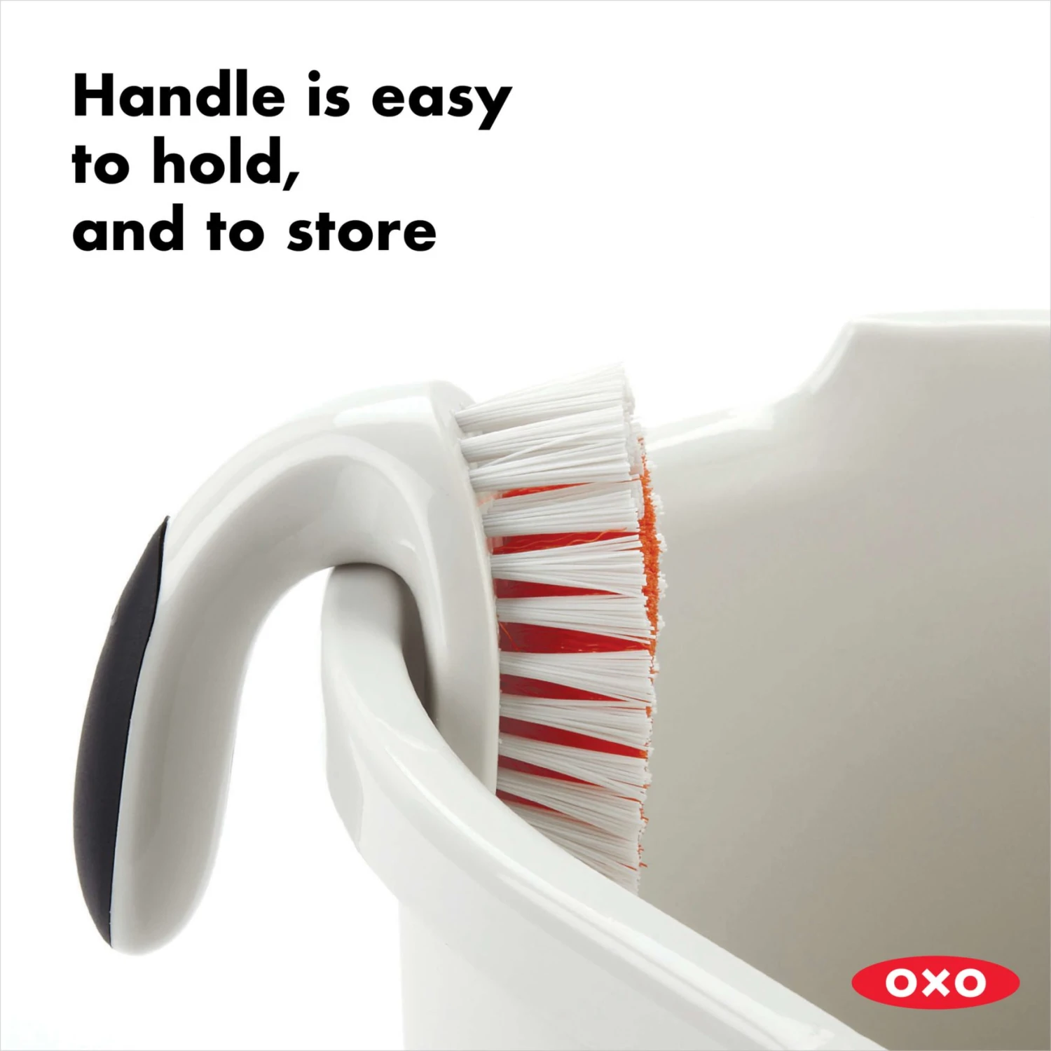 The OXO Good Grips All-Purpose Scrub Brush provides a powerful scrub with the help of a contoured handle, which absorbs pressure and protects your knuckles while you clean. The strong, sturdy bristles cut through dirt, mildew and soap scum with ease and are shaped to tackle corners and grout. Our Scrub Brush has a curved neck to conveniently hang from the rim of your bucket or caddy. The soft, comfortable handle has a non-slip grip, even when wet.