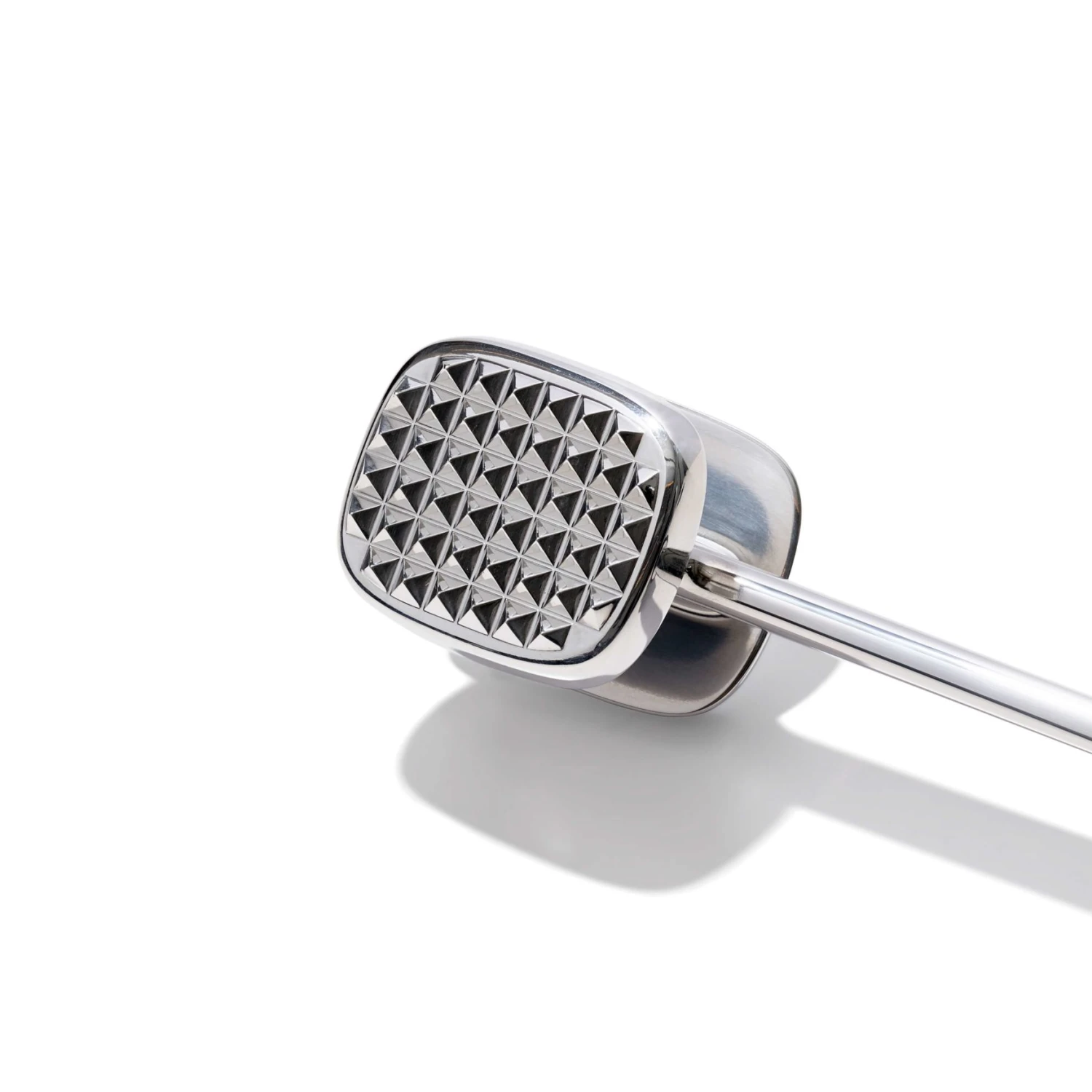 This die-cast aluminum meat tenderizer lets you pound meat flat for faster cooking. The pyramid-shaped teeth are perfect for breaking down tougher cuts, while the flat side makes short work of flattening poultry, pork and beef to a uniform thickness for even cooking. The angle of the head is designed to maximize force, while heavy-duty construction provides just the right weight. The soft, non-slip handle fits comfortably in your hand and stays put, even when wet.
