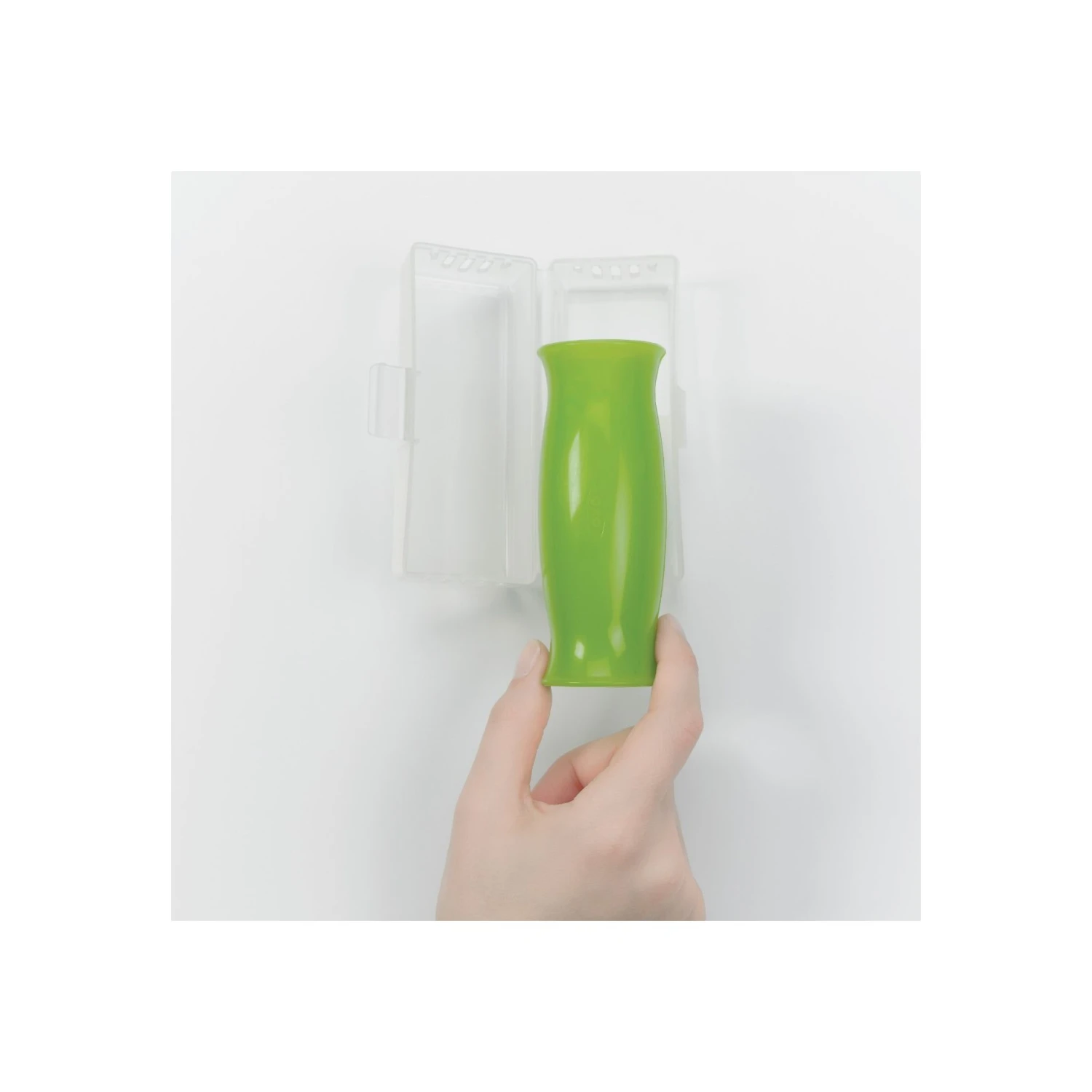 Insert garlic cloves into the green silicone Garlic Peeler and roll back and forth on the table or countertop while pressing downward. Cloves come out peeled, while the peel stays inside. Your hands stay clean and won’t smell of garlic. A quick rinse removes the peel. Storage case included.