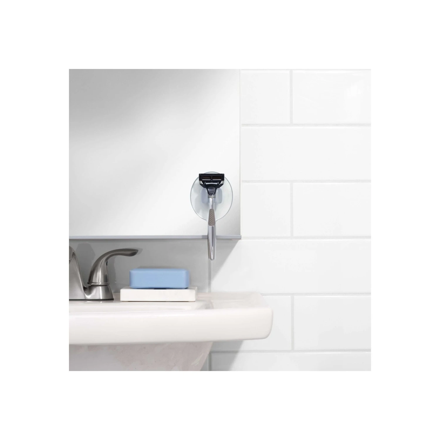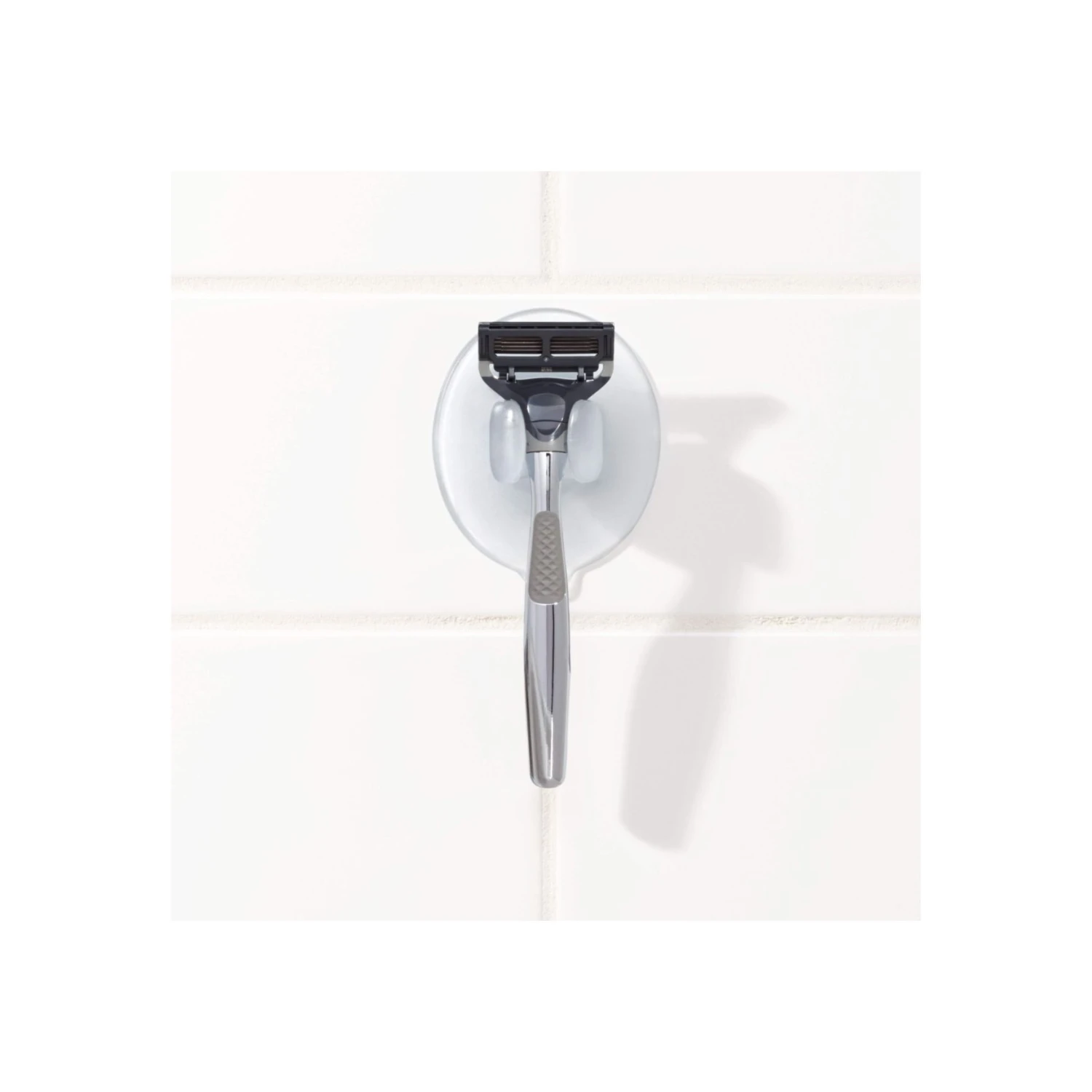 This convenient, compact razor storage solution features a hook that flexes to fit a wide range of razor handle sizes. The surface is smooth and easy to clean, and the PVC-free suction cup provides a secure hold on smooth, non-porous surfaces.