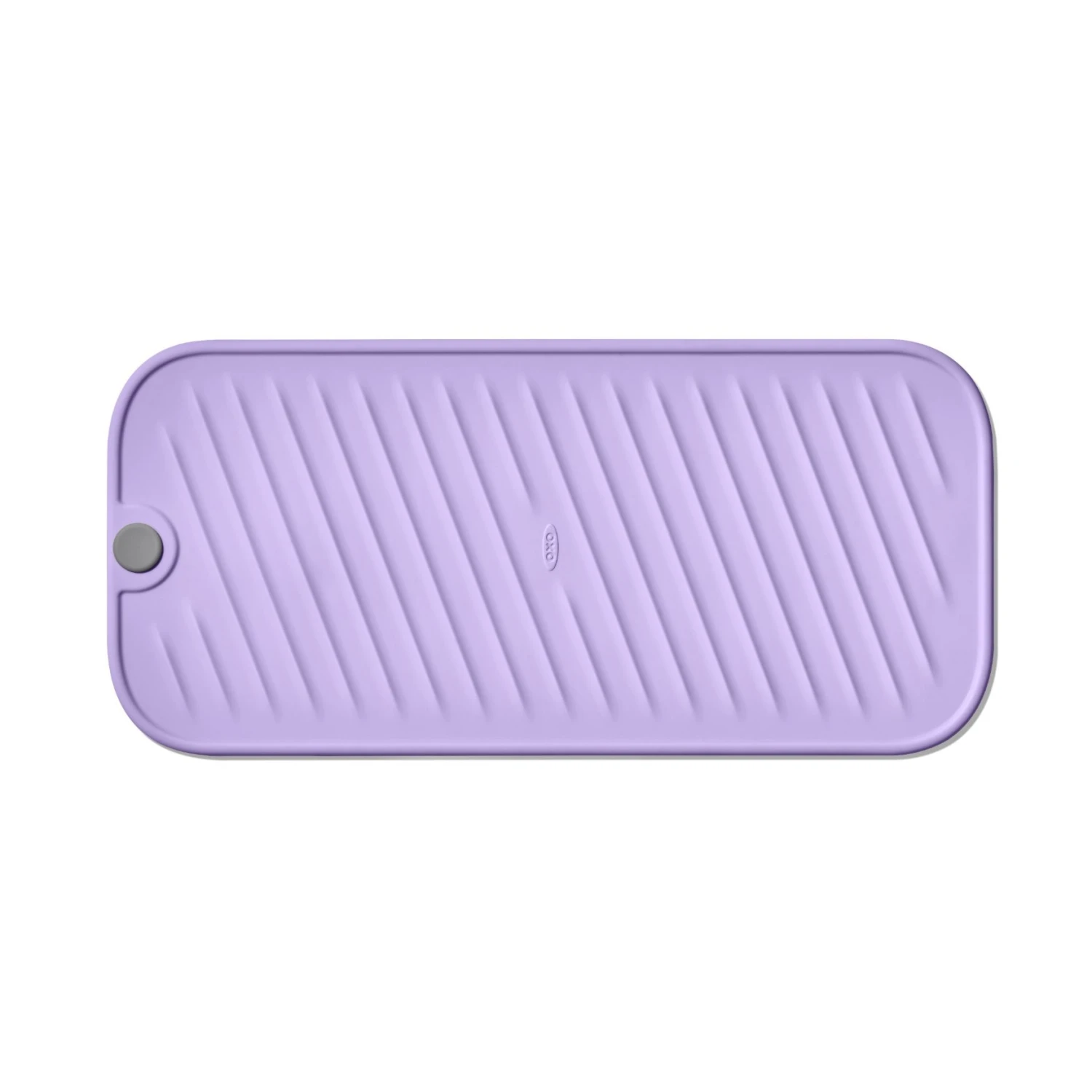 Safeguard your surfaces from hair tools like curling irons and flat irons with the OXO Good Grips Hot Styling Tool Mat. The silicone construction handles the heat to protect your counters. Wrap the Mat around hot irons and straighteners and use the corner loop to fasten it; the textured surface stays cool for safe storage and transport. The silicone surface is non-slip and easy to clean.