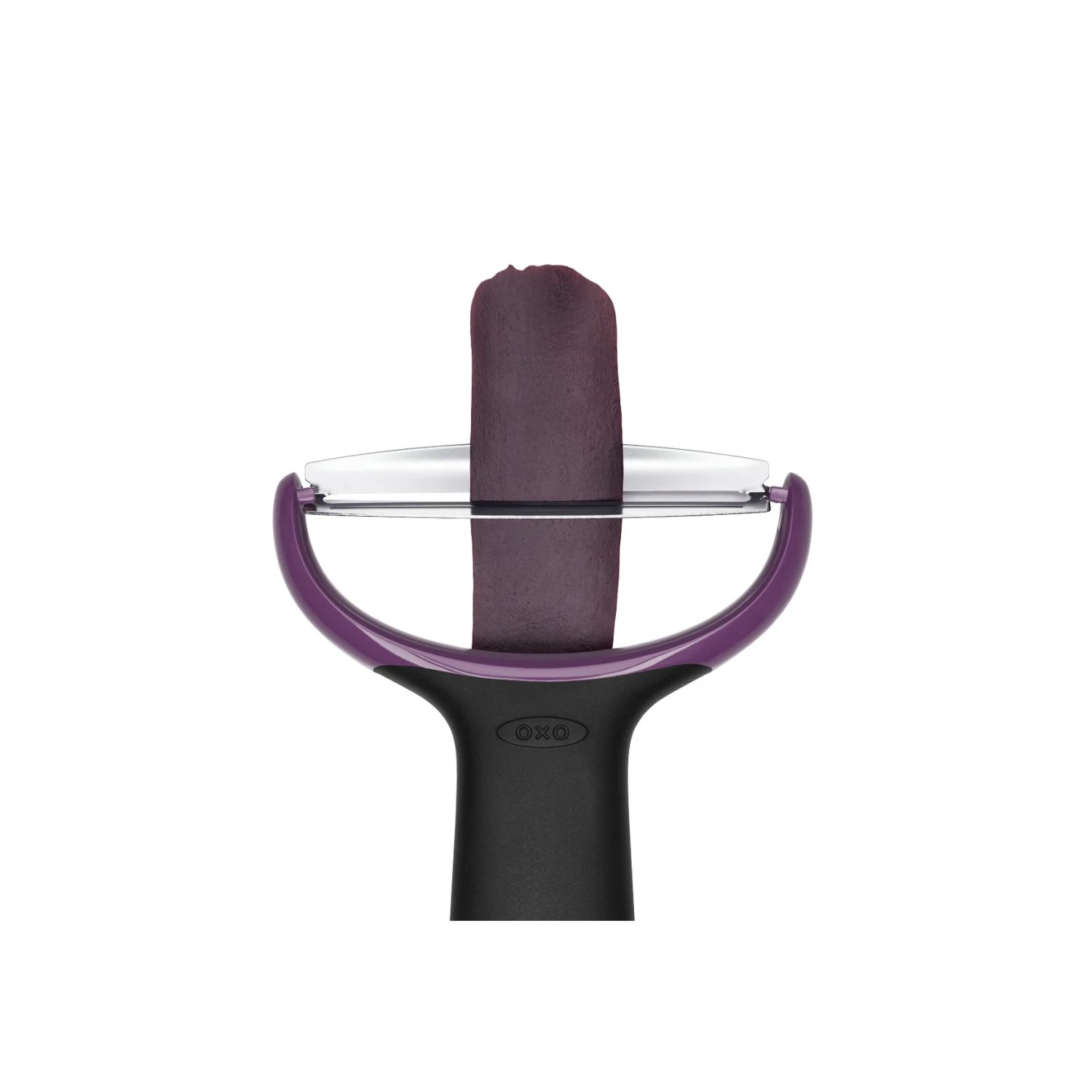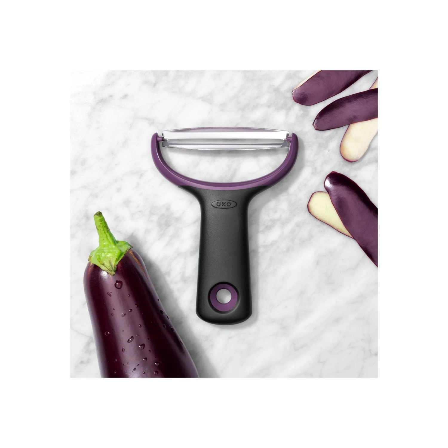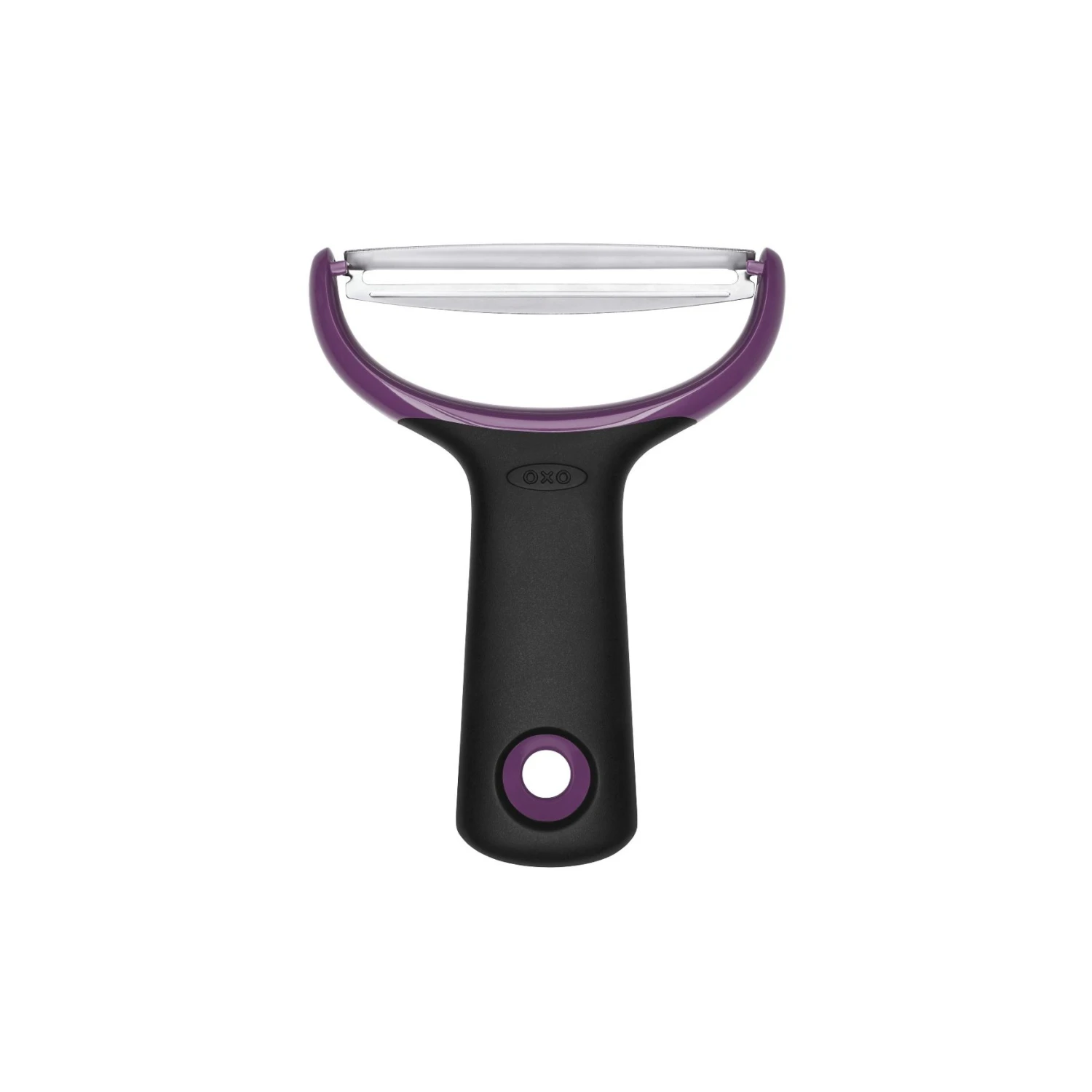 Peeling big vegetables doesn’t have to be a big task with the OXO Good Grips Large Vegetable Prep. Whether you’re peeling butternut squash, eggplant, or even if you’re shredding cabbage, the wide blade and Y-peeler shape makes the task smooth and simple. We took our iconic peeler and adapted it for this specific task, with a new compact design and easy-to-maneuver shape. The sharp, Japanese stainless steel blades will never rust, and the non-slip handle will keep you going until the job is done. Dishwasher safe.