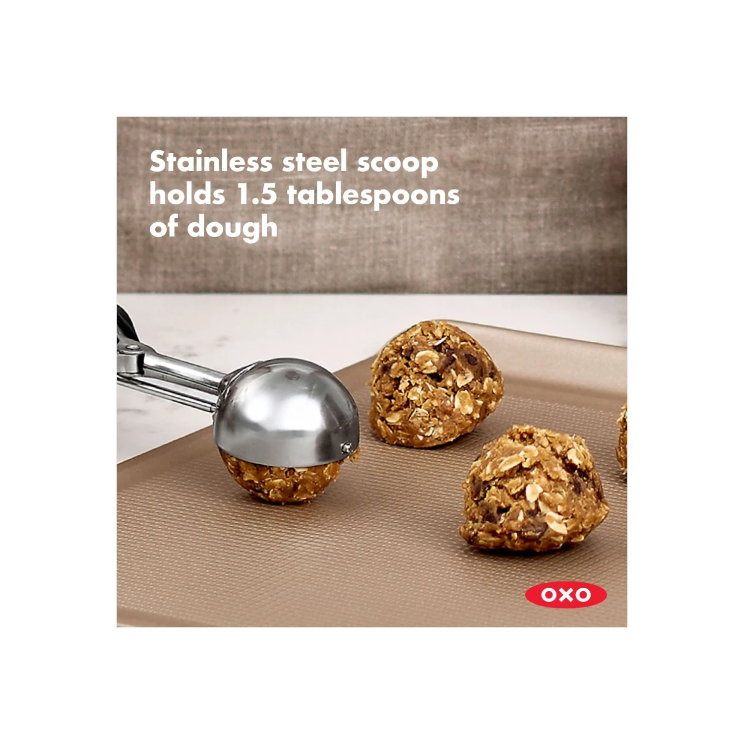 This size 40 portioner is designed for easy scooping and consistent shaping. The soft grip absorbs pressure while you squeeze to smoothly release your cookie dough. Dishwasher safe. Also try our Small and Large Cookie Scoops.