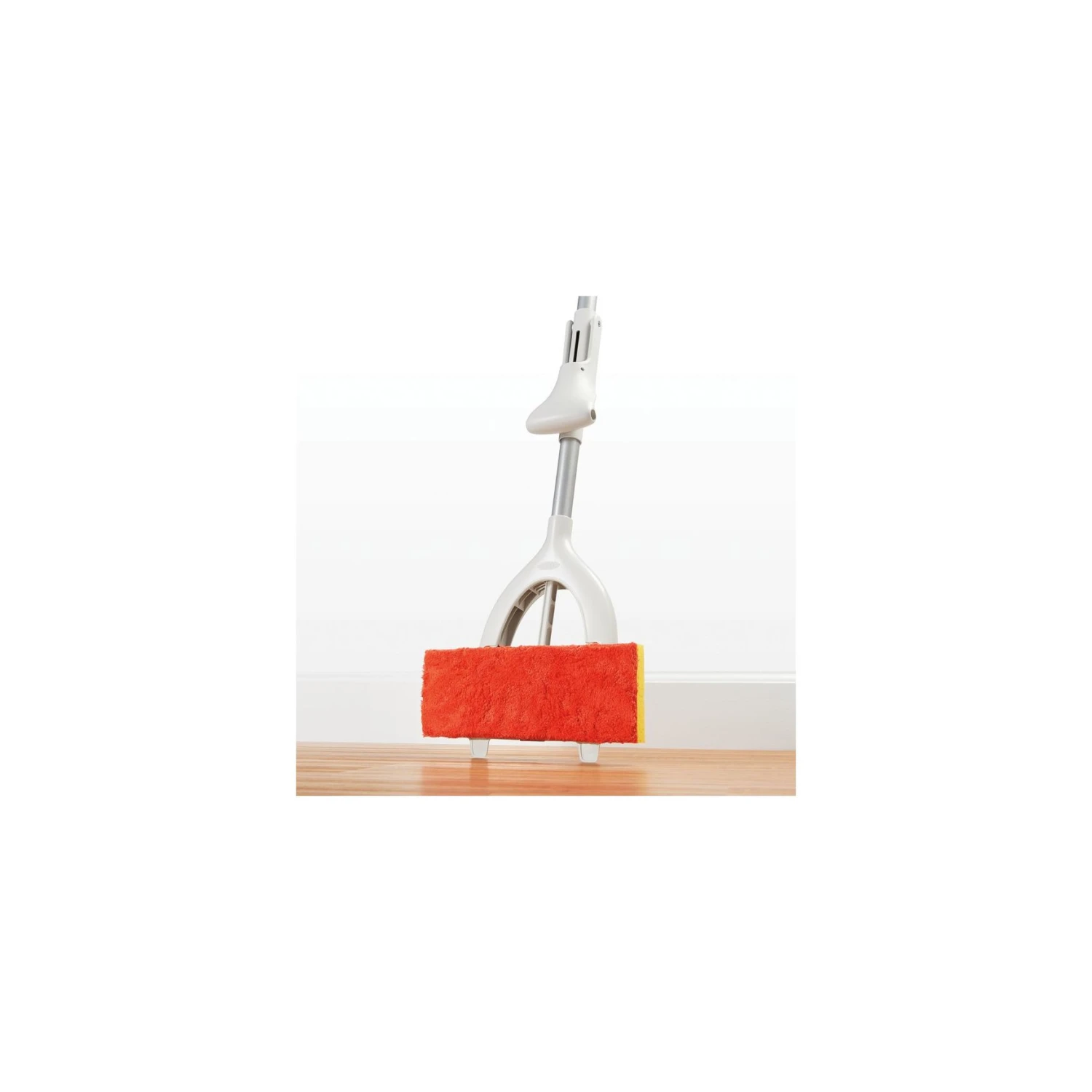 Our Butterfly Mop features a wide, absorbent sponge that covers large areas with one swipe, while the microfiber pad grabs and traps dirt for thorough cleaning. The comfortable, easy-to-hold handle fully wrings the mop with one simple pull, and the sturdy steel pole has a low pivot to reach under furniture. The Mop has two feet which elevate the sponge off the ground while not in use to ensure that it dries quickly and completely.