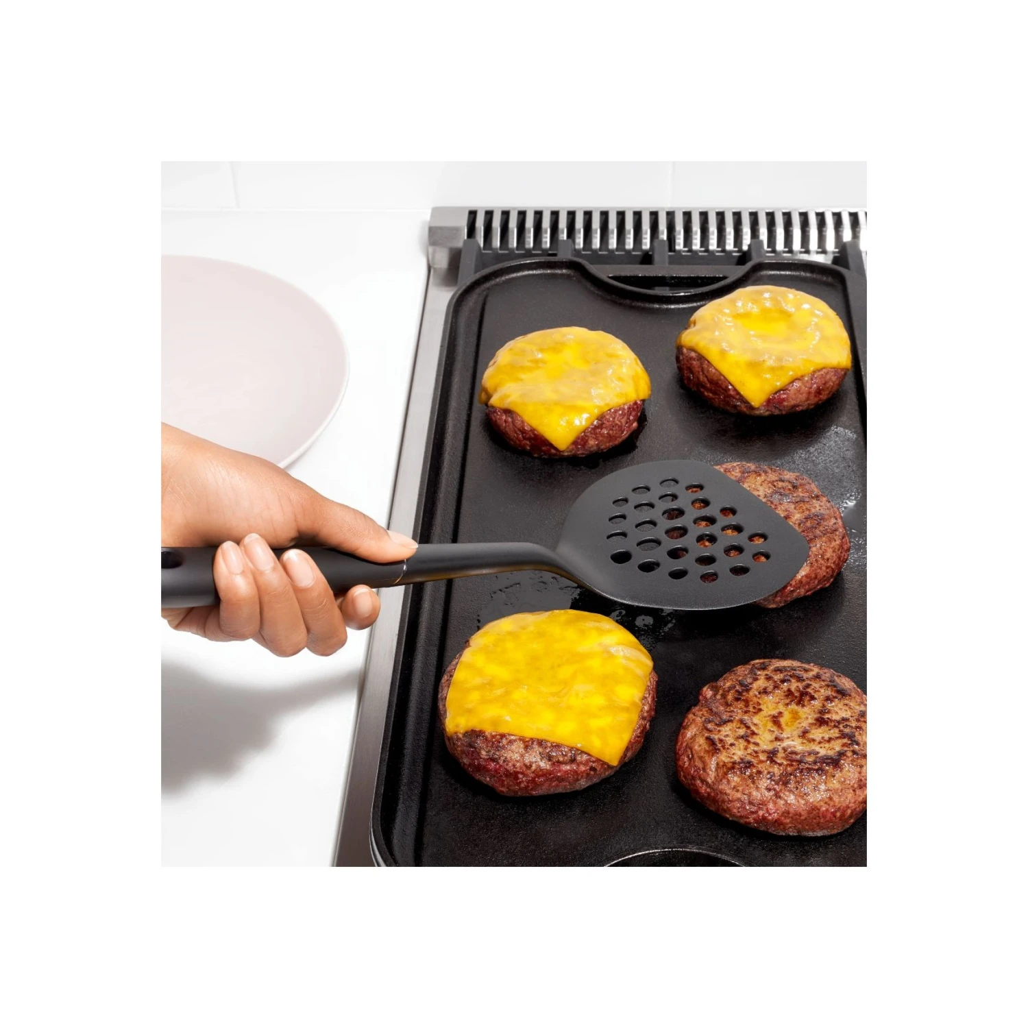 The Nylon Round Turner has a broad surface and round shape for easy flipping of pancakes, omelets, burgers and more. Our nylon tools are a cut above, featuring oversized heads, extra-long, sturdy necks and comfortable grips. Heads are heat-resistant up to 450°F and won’t scratch non-stick cookware.
