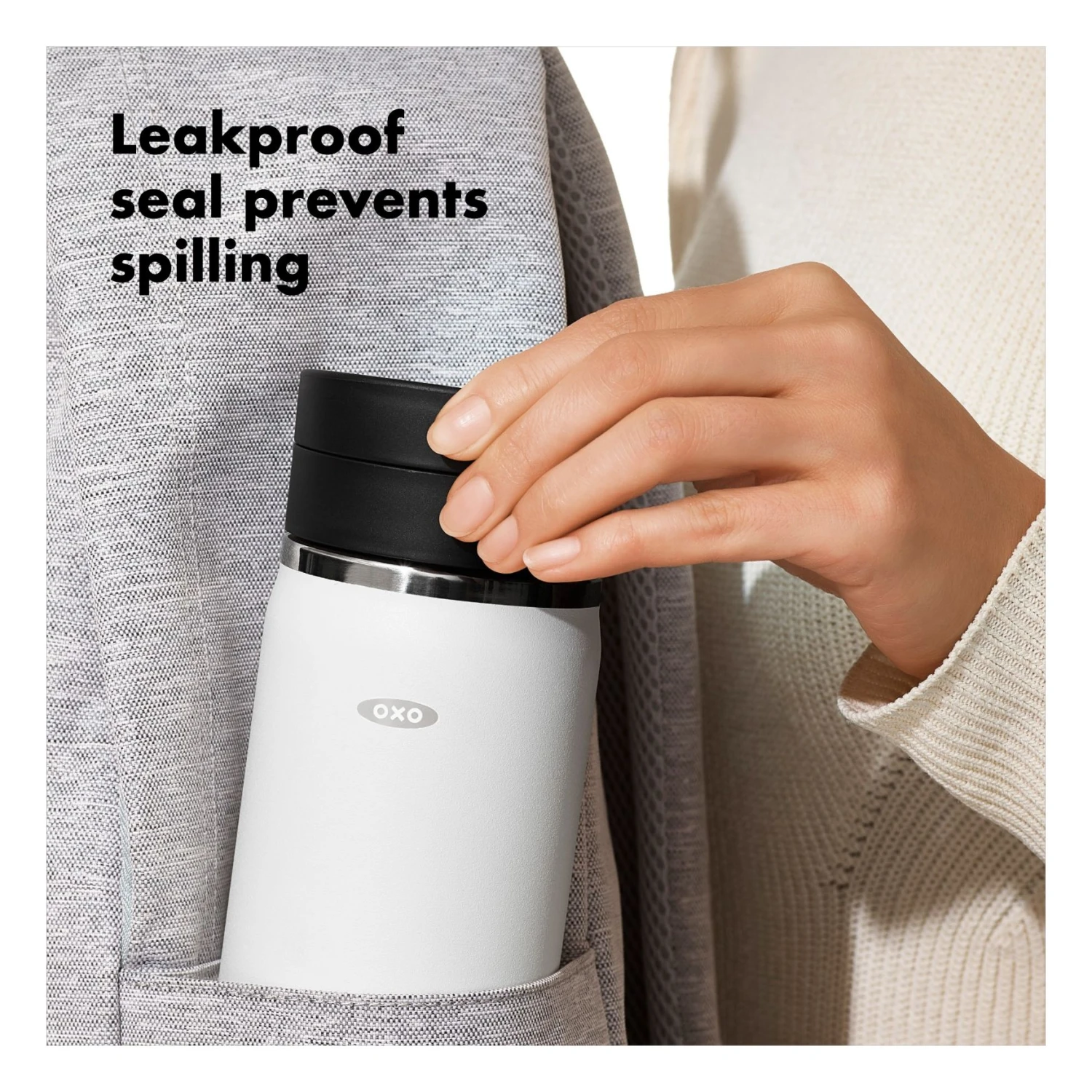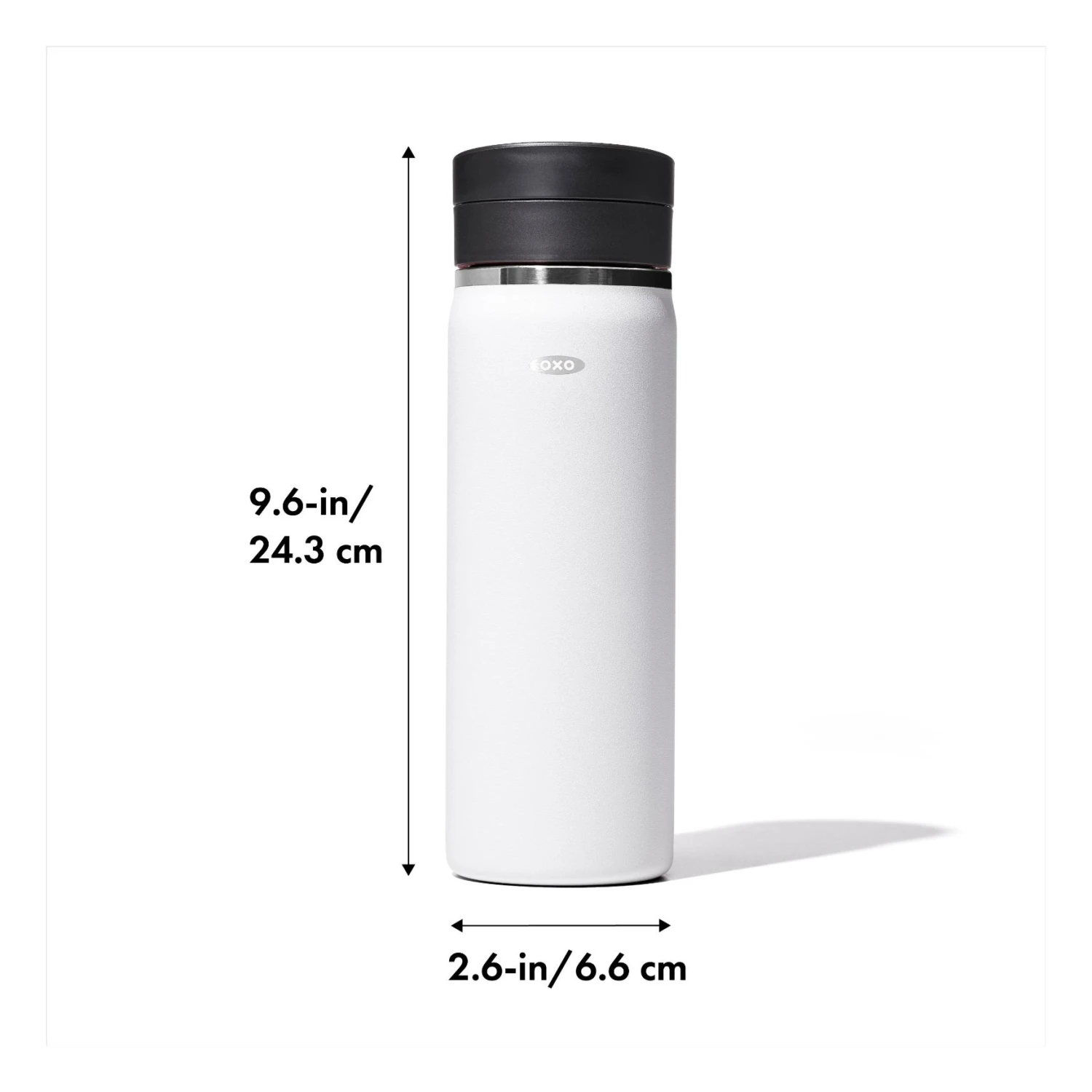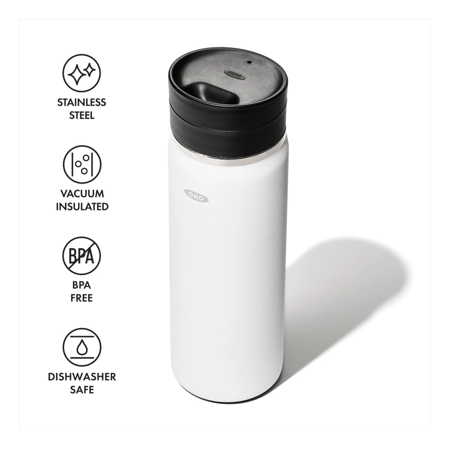 Whether your first sip is at the kitchen counter, in the car or on a walk with the dog, with the OXO Good Grips Thermal Mug with SimplyClean™ Lid, you can enjoy your favorite brew without missing a beat. Professional-grade stainless steel lets the of your drink shine through, while the BetterTemp™ vacuum insulation keeps things hot for 12 hours or cold for 24 hours. The SimplyClean™ lid twists open for sipping and fully disassembles for thorough cleaning. A sweatproof coating provides a secure grip no matter where the day takes you. This travel mug is sized to fit most coffee makers and cup holders for easy brewing and stowing. Dishwasher safe.Features Professional-grade stainless steel construction BetterTemp ™ vacuum insulation keeps drinks hot for 12 hours and cold for 24 Easy twist opening for seamless sipping Sized to fit most cup holders Holds 20 oz/590 mL SimplyClean™lid disassembles for thorough cleaning, dishwasher safe