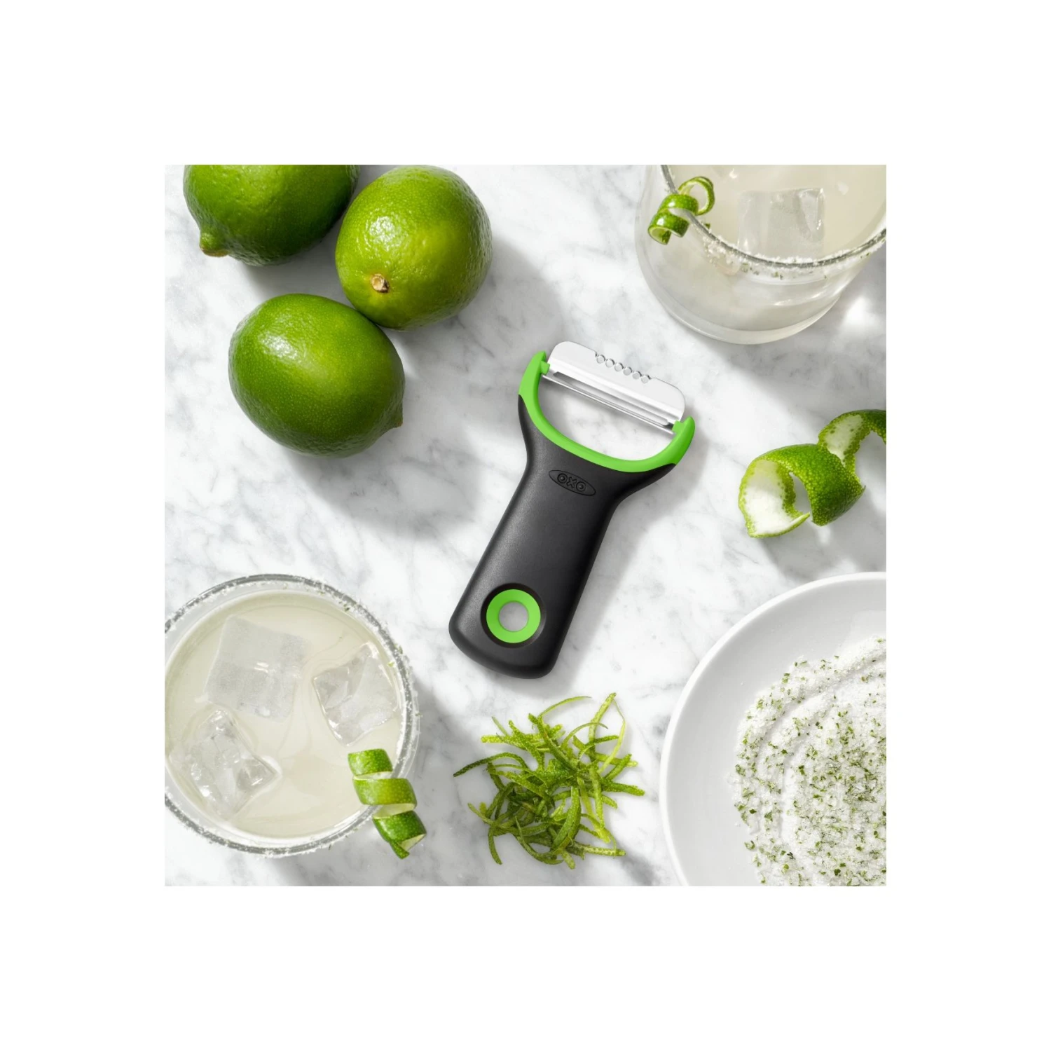 Leave the pith behind with the OXO Good Grips Citrus Prep Peeler & Zester. Create the perfect cocktail garnish, top of your favorite dessert with a little zest, and so much more. We took our iconic peeler and adapted it for this specific task, with a new compact design and easy-to-maneuver shape. The sharp, Japanese stainless steel blades will never rust, and the non-slip handle will keep you going until the job is done. Dishwasher safe.