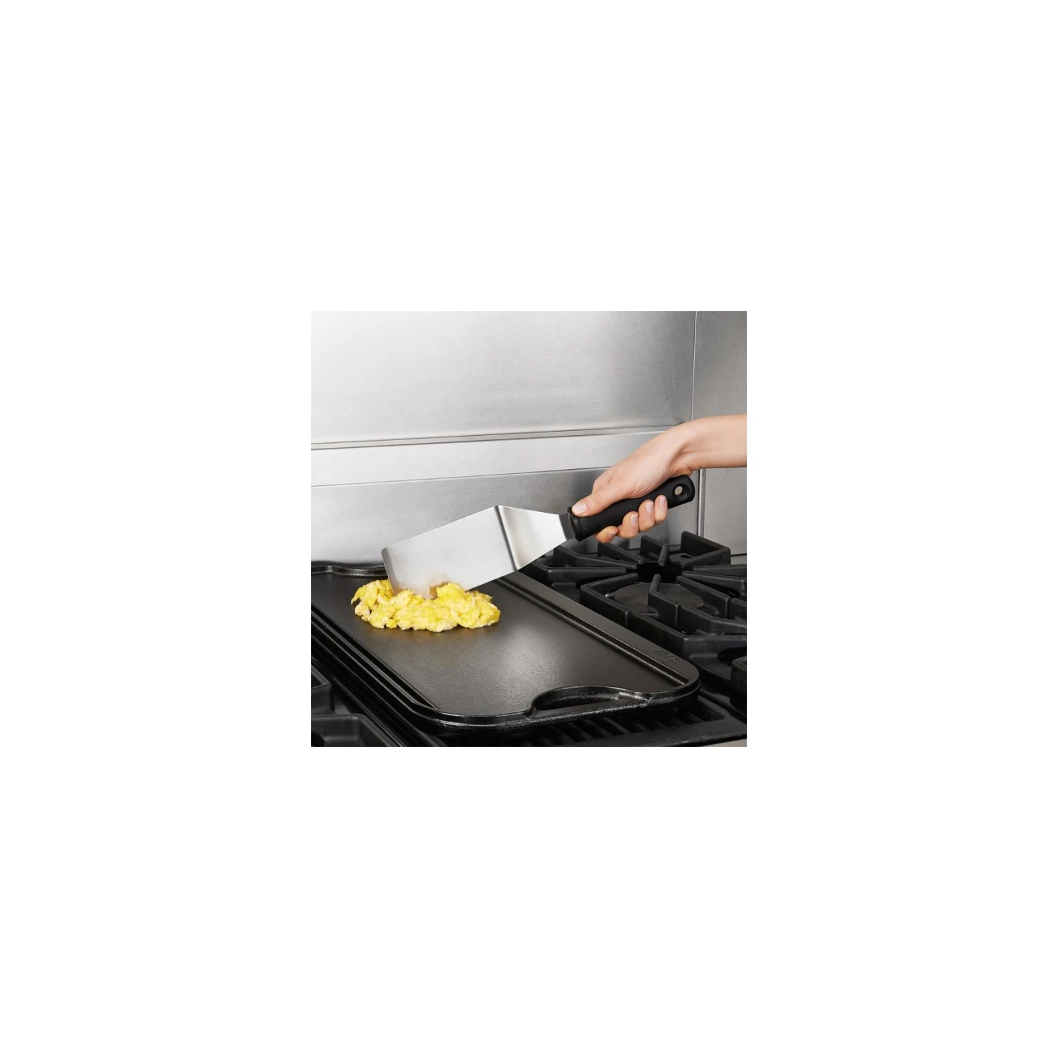 The Good Grips Restaurant Turner is perfect for flipping burgers, making pancakes, sautéing vegetables, scraping griddles and more. All three edges are beveled for chopping food while cooking, just like a professional chef or line cook! The large head easily lifts large food while keeping it intact, and flexes to make transferring and turning easy. The flared non-slip handle provides a comfortable grip and helps keep your hand away from hot food while in use.