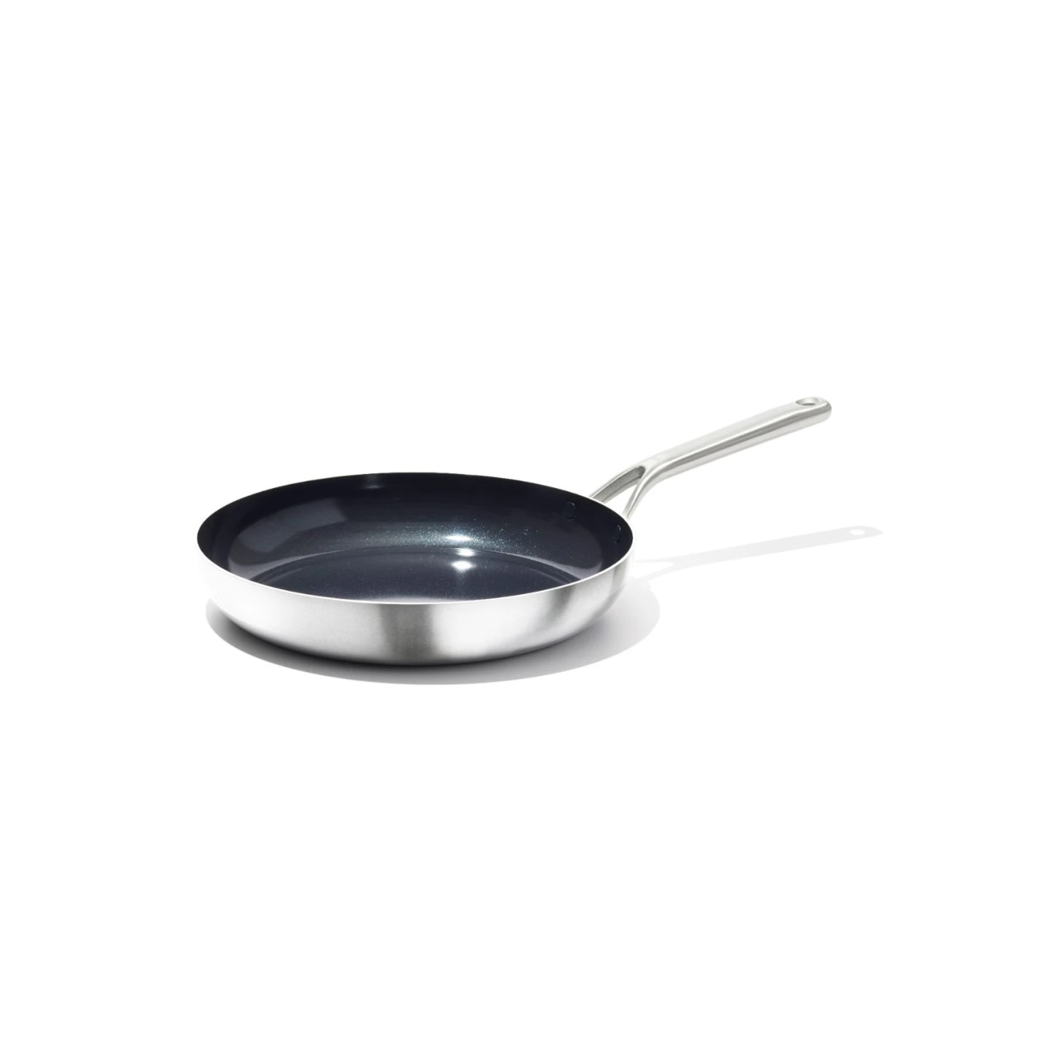 The OXO Tri-Ply Stainless Non-Stick Mira Series features a diamond-reinforced ceramic non-stick coating, plus two layers of stainless steel with an aluminum core for uniform cooking. Stain-resistant finish helps prevent discoloration and the contoured handle provides a comfortable grip. Streamlined rivets and non-stick finish make for effortless cleanup. Induction ready, oven-safe up to 600°F/325.5°C and dishwasher safe. PFAS, PFOA, lead and cadmium free.