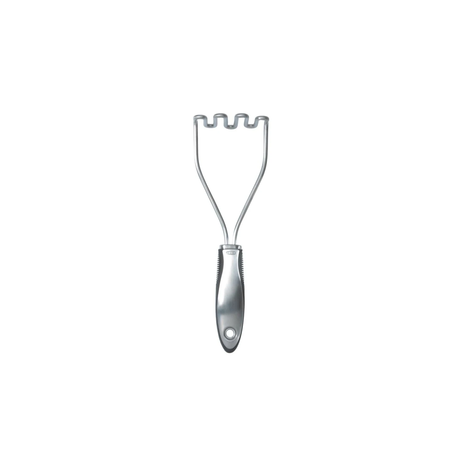 The OXO SteeL Potato Masher features brushed stainless steel handles and a professional stainless steel wire head that efficiently mashes potatoes. Our trademark flexible fins provide comfort during repetitive motions. Also works great on other root vegetables, or for mashing homemade baby food.
