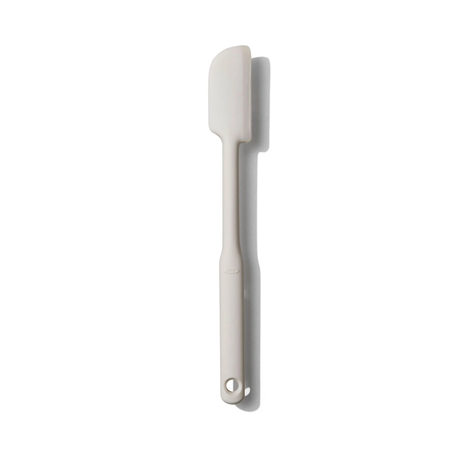 With the OXO Good Grips Jar Spatula, you can reach in any jar or container to get every drop. Flexible edges clear surfaces with ease, and are also great for blender blades, food processors, and even small saucepans. The long handle provides extra reach, and the comfortable, non-slip grip helps you take on tough tasks. Heat resistant silicone is easy to clean and dishwasher safe.
