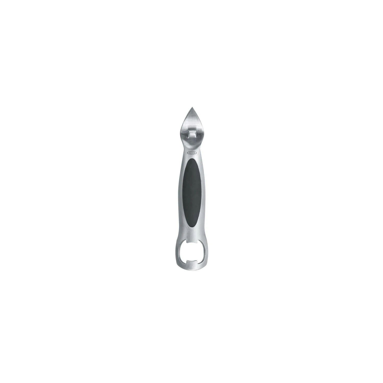 The OXO SteeL Bottle Opener has a stainless steel body and heads that make it easy to open bottles and pierce cans quickly and cleanly. It features a soft, non-slip handle that cushions your grip.