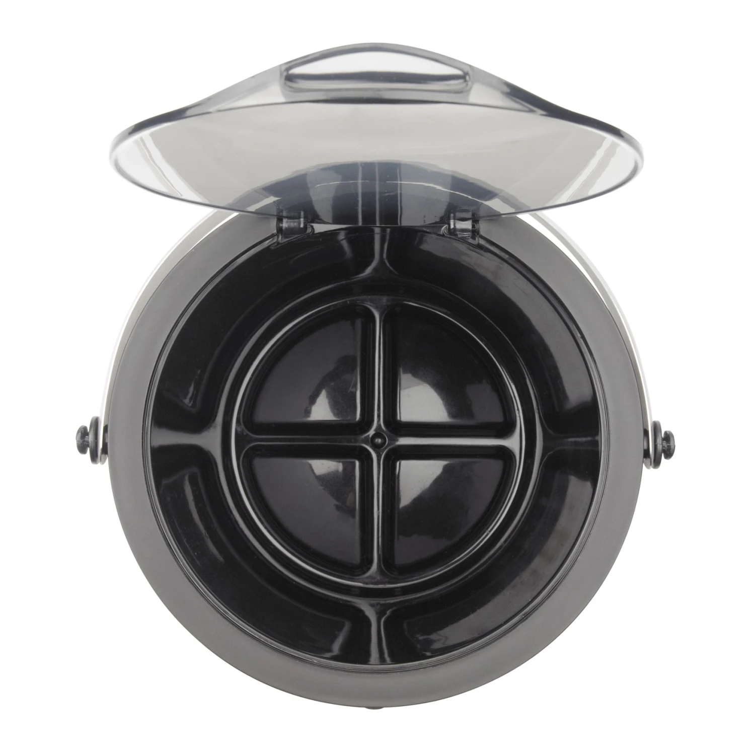 Our SteeL Ice Bucket is made with double-wall construction that prevents sweating and keeps melting to a minimum. An internal moat is designed to keep melted ice away from cubes. Tongs have sharp teeth, soft grips and a locking switch. Flip-top lid allows for one-handed access, and secure closing.