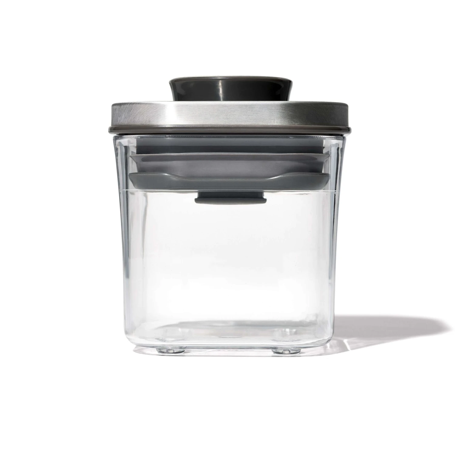The sleek, stainless steel accent of the OXO Steel 0.2 qt/0.2 L POP Container makes it a smart choice for modern kitchens. It’s an airtight, space-efficient and stackable storage solution that’s ideally sized for spices and dried herbs. POP Containers keep dry foods fresh and pantries organized, plus the wide range of shapes and sizes provide new possibilities for storing everyday staples like flour, sugar, coffee, cereal, oatmeal, grains, pasta and spices. With a helpful fill line to guide you, curved corners for easy dispensing and sturdy, BPA-free construction, these containers make storage a cinch. POP Containers aren’t just for kitchens: Use them anywhere you can use a little more organization. A full line of handy accessories conveniently attach to the underside of lids, expanding the possibilities of POP. Accessories sold separately. Lid is handwash only. Container and silicone gasket are dishwasher safe.
