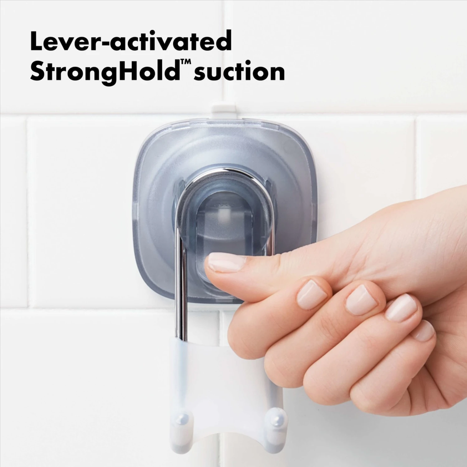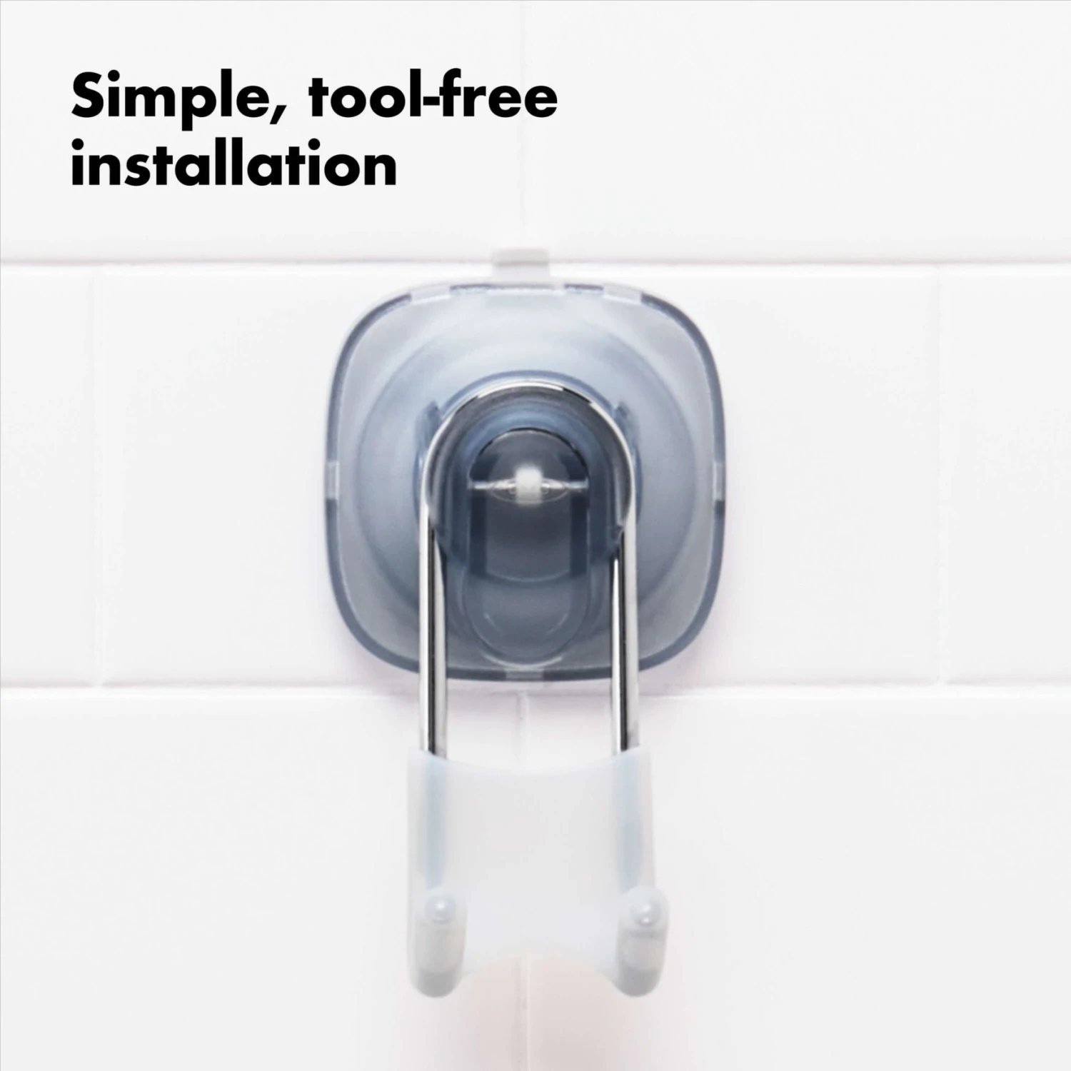 Hang razors, hand towels, loofahs and more with the OXO Good Grips StrongHold™ Suction Hook. The phthalate-free suction cup installs securely—without the use of tools—on smooth, non-porous surfaces like glass, mirrors and glazed tiles. Coated in sturdy silicone, the prongs hold onto shower essentials with a non-slip grip, even when wet. The easy-release lever makes our Hook simple to reposition or remove. For best results, use on smooth glazed surfaces, mirrors or glass. Not recommended for use with textured or porous surfaces including some stone, acrylic or metal.