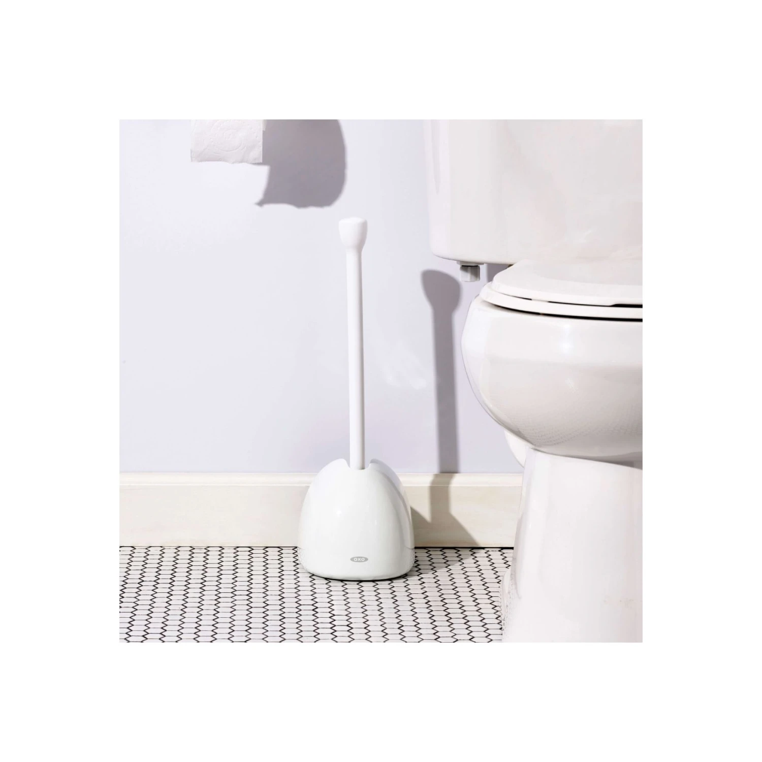 The OXO Good Grips Plunger with Cover keeps things neat and discreet if you choose to store it near the toilet, and a compact design that allows it to fit under the sink or a utility closet if you prefer to hide it away. The cover stays on as you carry the plunger, so you never have to worry about drips or accidentally bumping it against something. With a durable head design and a wide, flat handle to absorb pressure for greater comfort and provide leverage as you work.